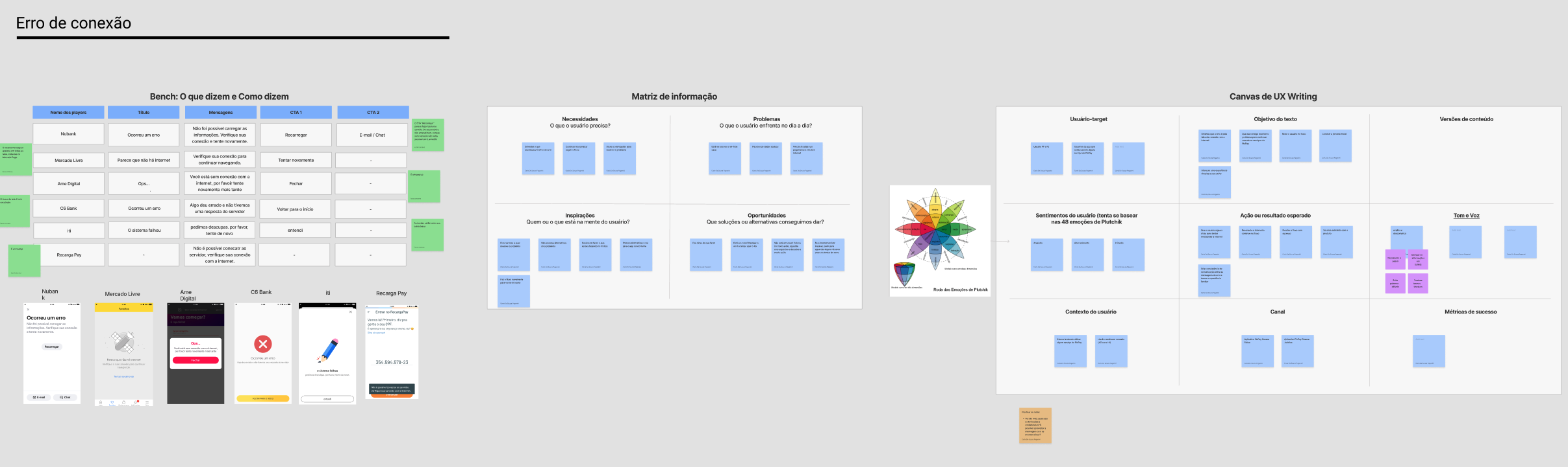 1. Começamos com um simples benchmark, pra entender os padrões de mercado e aplicar a Teoria de Jakob (não criar coisas muito distintas do que os usuários estão acostumados). Nosso tempo era curto, então não poderíamos fugir da proposta.